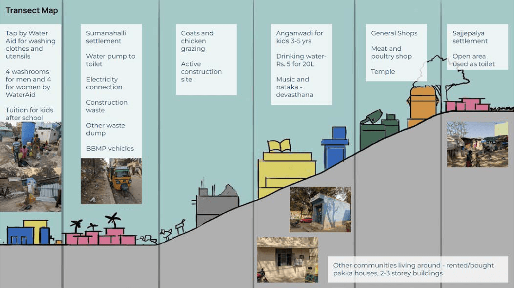 Immersion into the physical and social context of the slum meant knowing as much as we could about various aspects of living for different members within families. It included collecting baseline information, utilities and usage, interaction with physical space in and around the settlement, collecting tangible and intangible information.